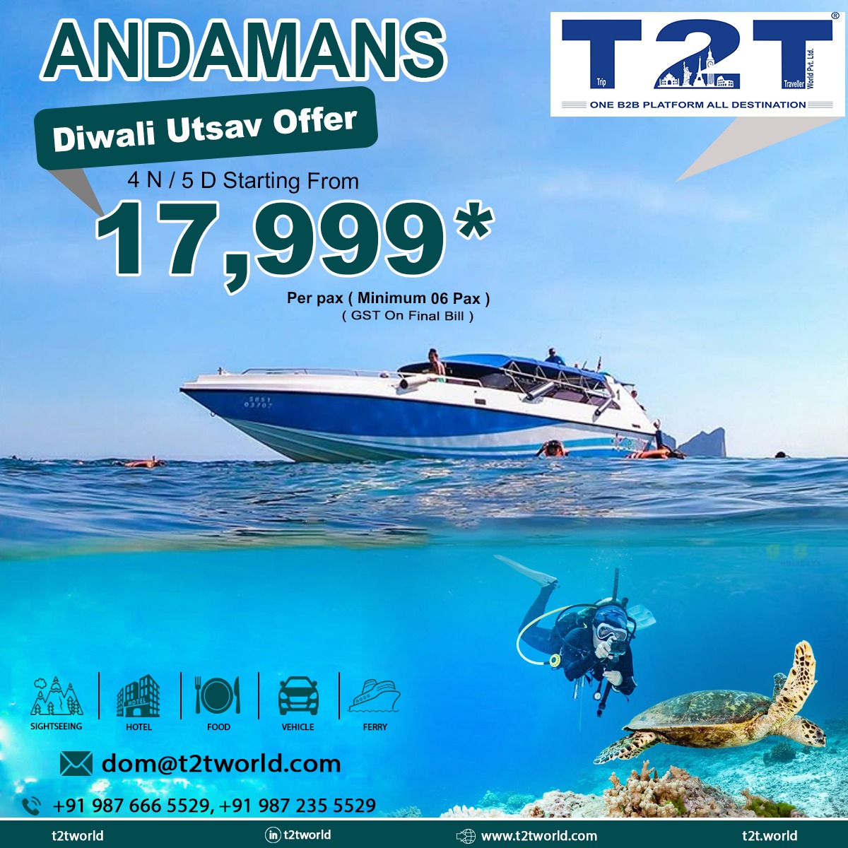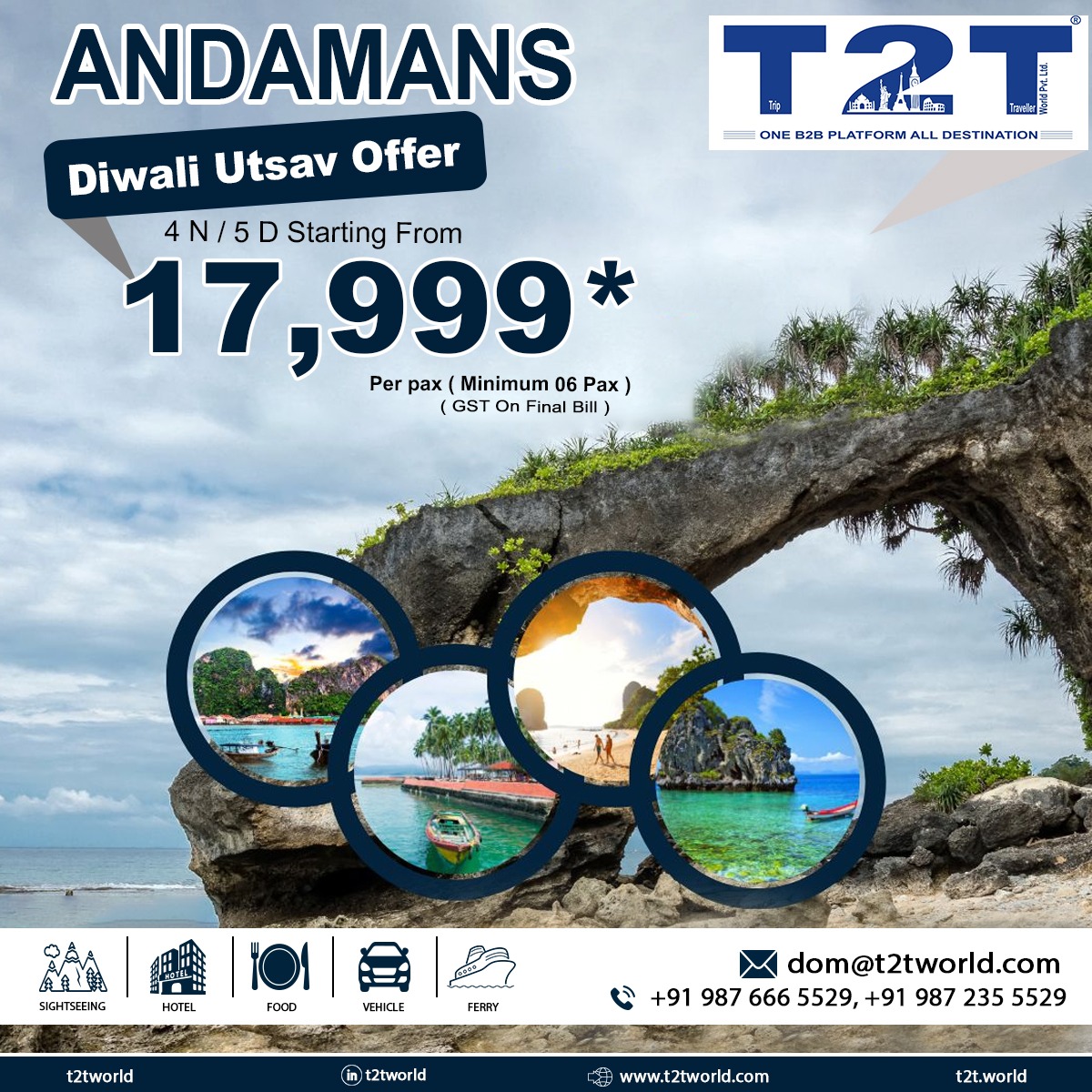 IMPORTANT NOTE : - In case of any unexpected bad weather Condition Or due to any unavoidable circumstance if the ferry to Havelock or other island gets cancelled, some other alternative accommodation will be provided in Port Blair / Havelock and additional night accommodation in Havelock/ Neil Island / Port Blair will be on direct payment basis on. This itinerary strictly also depends on weather conditions. So, if in any condition we are not able to provide this itinerary then different itinerary will be done. Amount will be non-refundable .